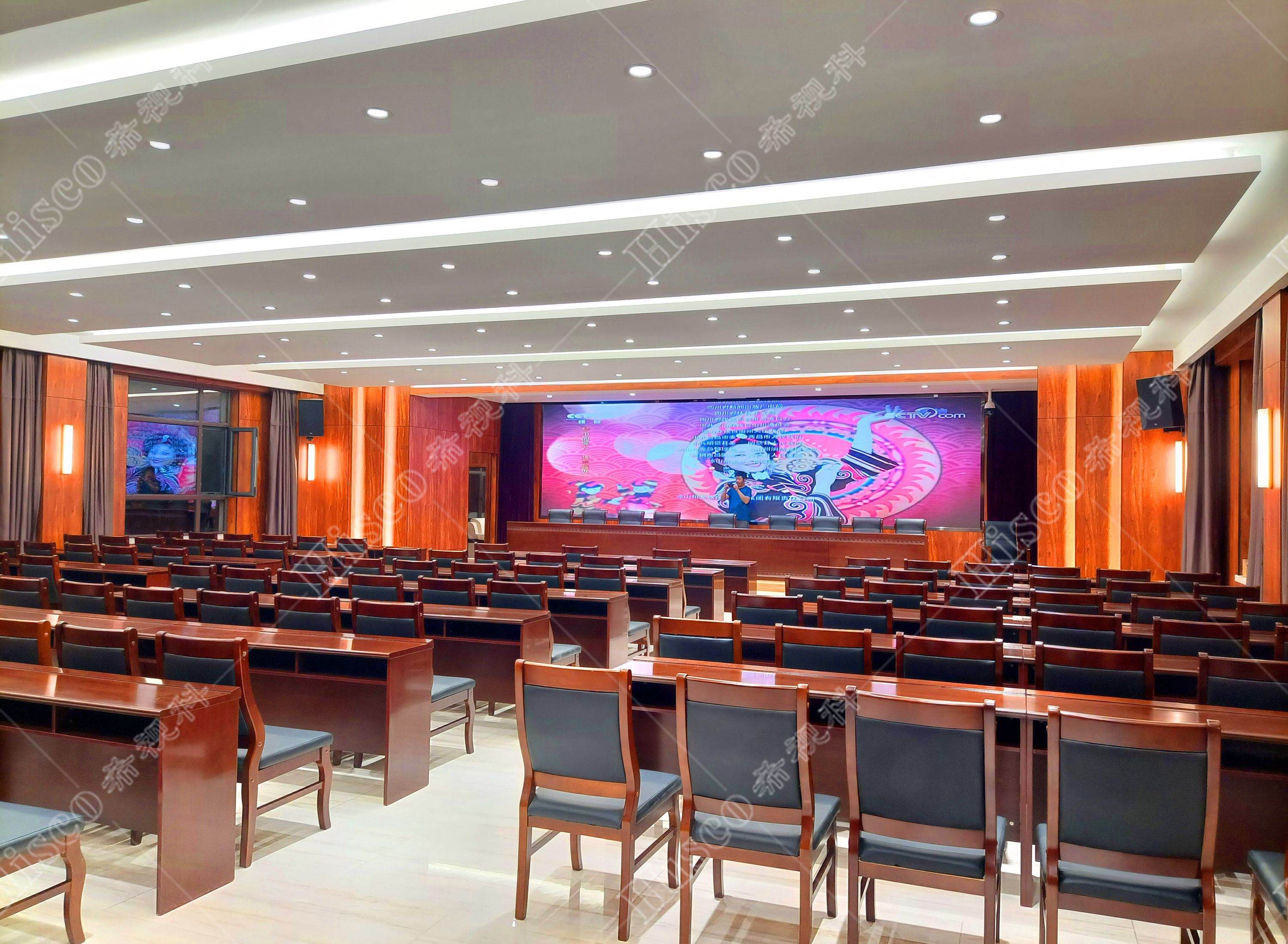 会议室内需要需要做扩声系统、会议系统、显示系统,智能化系统;满足日常开会的讨论、发言等等。综合礼堂的设计,追求语言的清晰图和饱和度,声压级级要求达到国家厅堂扩声系统一级标准。同时预留了丰富的接口,方便以后系统的扩展,实现整个系统的强大功能。同时有演出用的舞台,配置了专业的舞台灯光系统和演出扩声系统,加了超低音音箱和效果器,追求声音的饱满度和浑厚感,能够满足文艺演出,会议报告,庆典活动召开等功能。